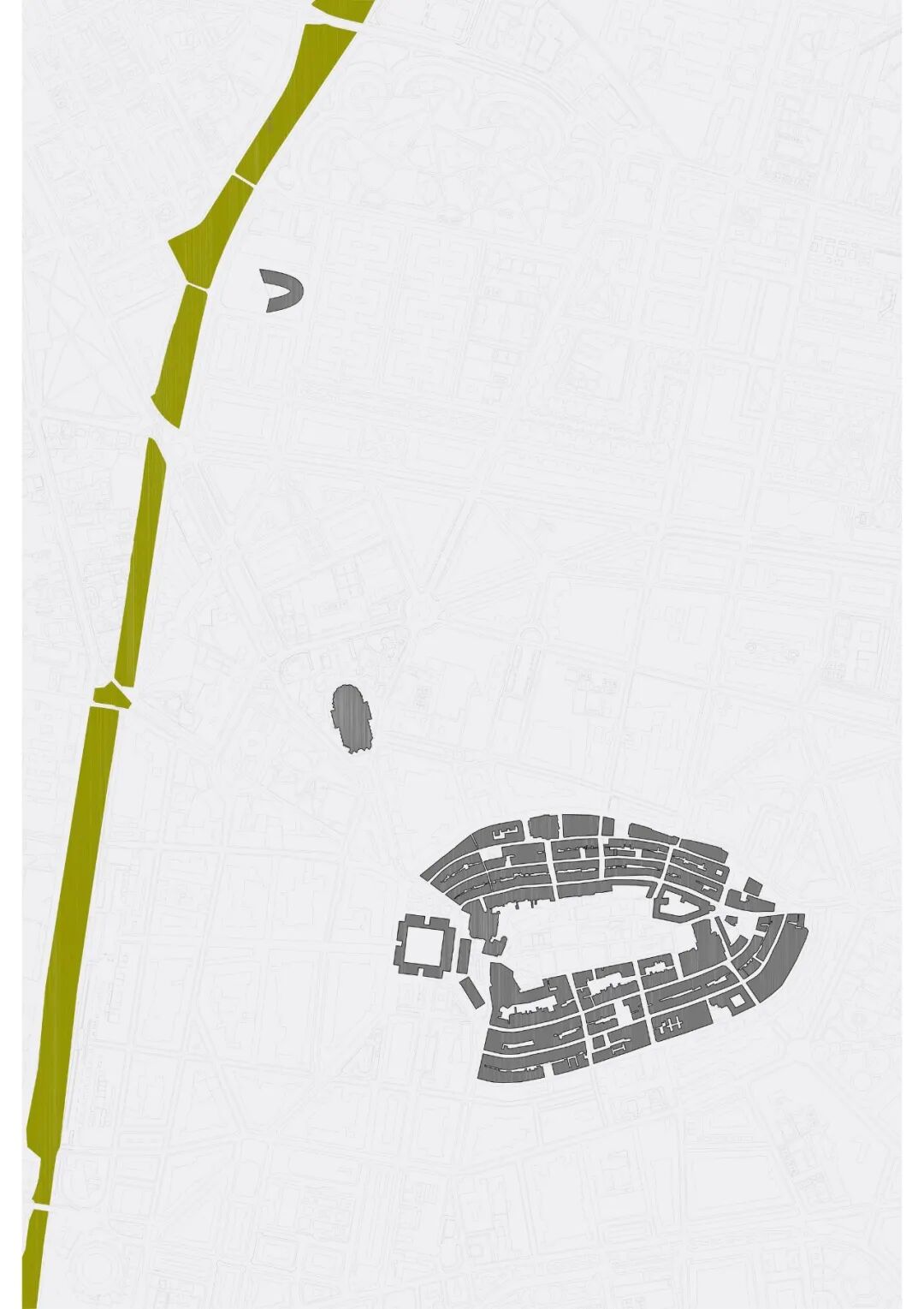 出发点是这样一个设施的独特特征,对公民具有重要意义,我们认为有必要将自己从居住城市网格排列分离出来,并以此确立项目的正式策略。我们追求与旧区的基础网格结构,中世纪核心的某种城市联系。