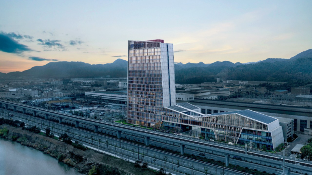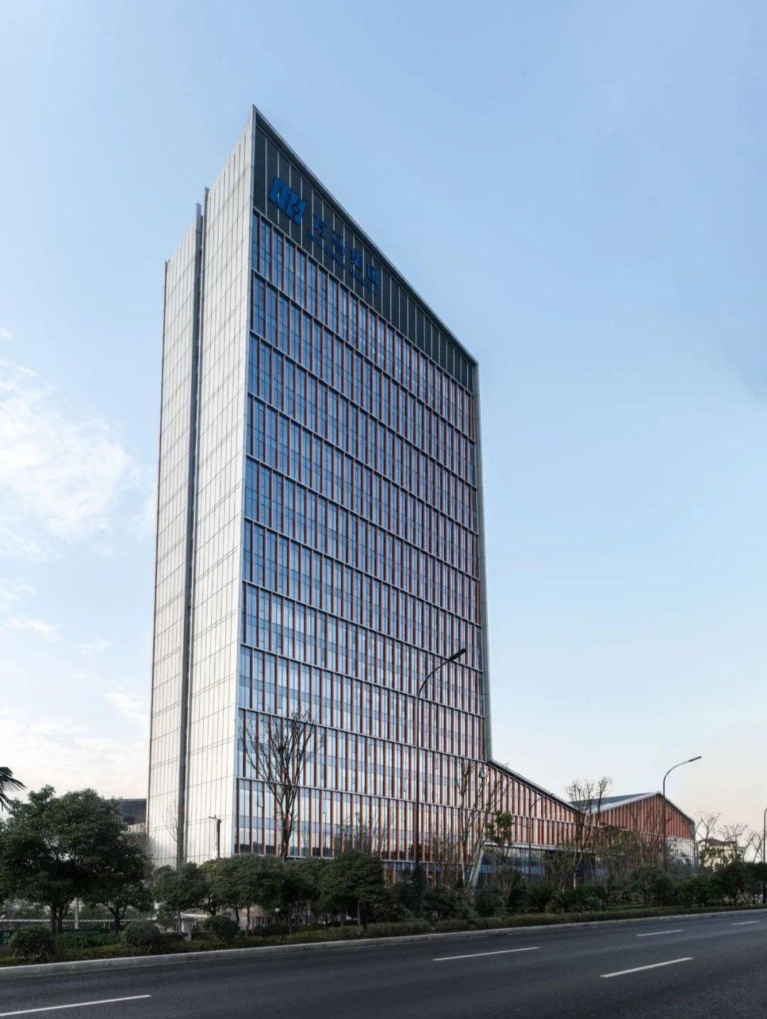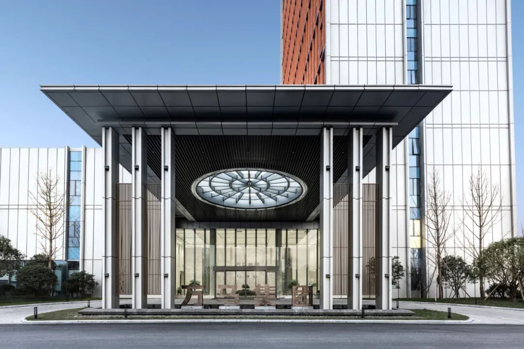 干净洗练的材质以及流动丰富的外轮廓使整体建筑现代简洁,又不失丰富细腻,成为临安创新产业园区辨识性极强的地标。