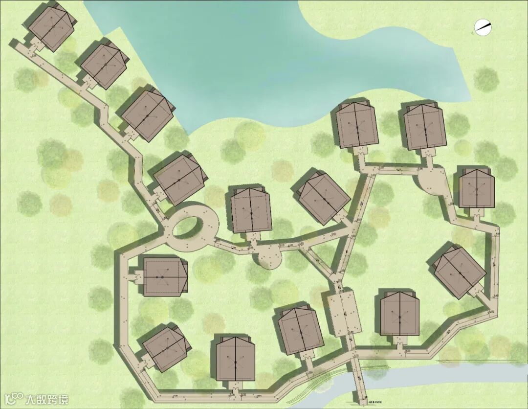 D户型利用仿真茅草作为屋面,整体呈弧型,充满原始的自然感。