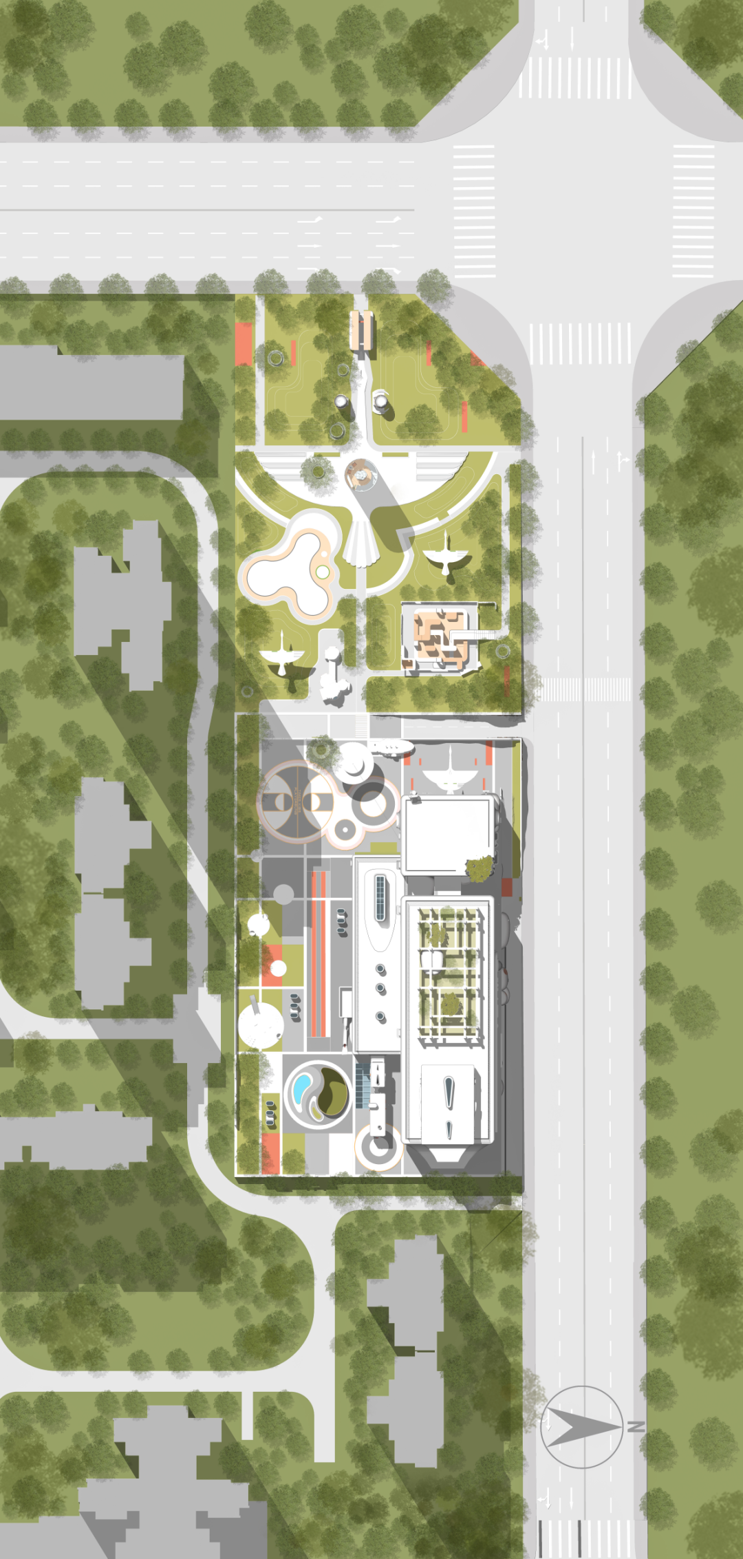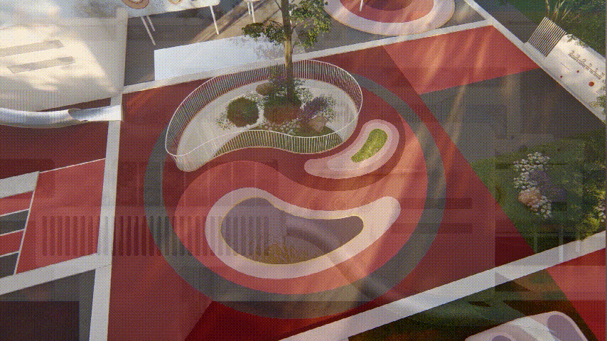 占据项目西向的整片区域被规划为市政广场,我们将它打造成了一个围绕知识宇宙展开无限遐想的儿童公园。