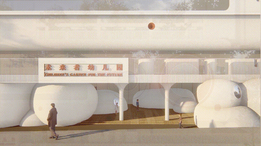 幼儿园是承载童年美好记忆的容器, 建筑以精神力量的形式「入侵」,使得心智空间拥有一个无限延伸的可能,它更像一种属性,不依赖于时间而存在。
