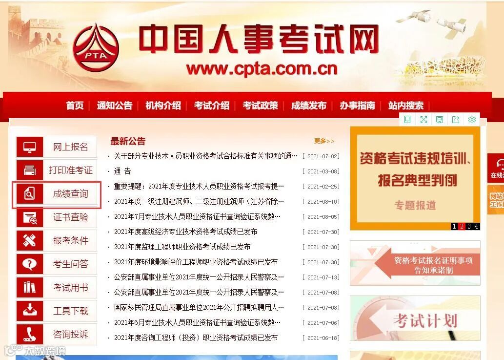 查询成绩:网站登入链接:http://www.cpta.com.cn/index.html