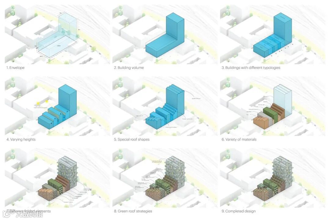 建筑用“条形码”组成,形成一个清晰的家庭,每一个都通过不同的高度、屋顶形状和外墙表达自己的特点,外墙由木材、玻璃、再生砖或生物基复合材料制成。该项目预计将于2022年底开始建设。