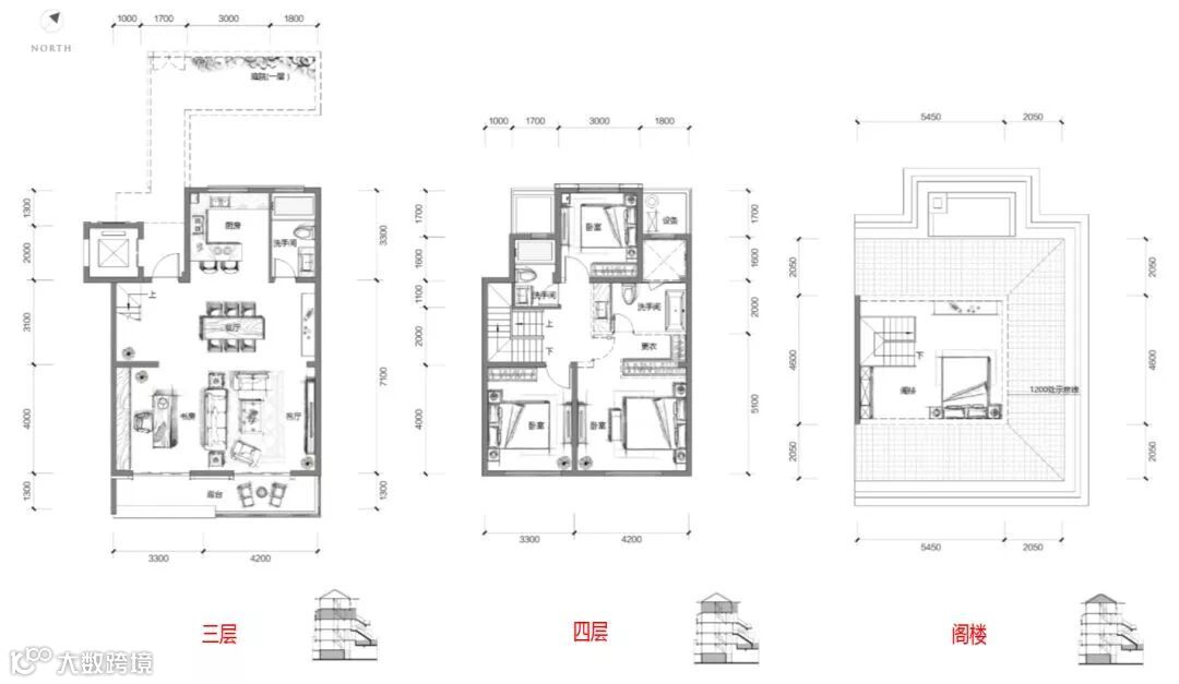 而“品字形”的上下叠墅为了避免这一问题,横跨两个下叠,为上叠提供了两个下叠全然没有的大开间。