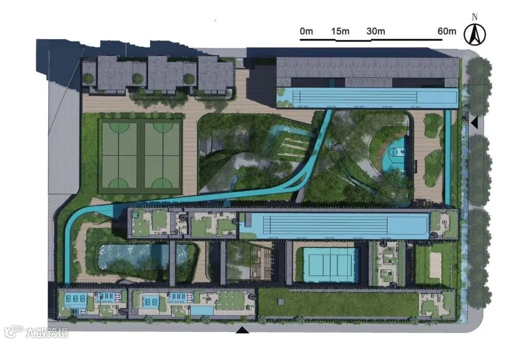 在平台层以下的空间组织中,有意识地打开外围边界、形成对位的孔洞,并与水景、绿植相结合引导通风。底层房间包括体育馆、剧院、美术馆等大尺度空间,均可向院落敞开形成连续的空气对流。使得平台层形成一个四围通透的界面,与底层院落结合在一起。