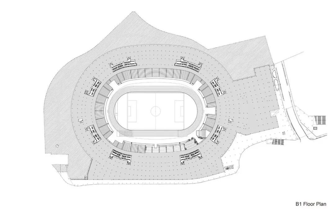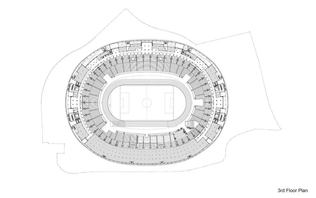 寻求卓越的结构性能和可操作性——为了在有限的施工周期内实现卓越的质量和耐久性,悬臂式屋顶和支架由一个简单的钢框架构成,由相同的结构在圆周方向重复而成。预制材料大量用于基础和观众座位。采用一层软阻尼结构,下部软层采用油阻尼器,有效吸收地震能量。