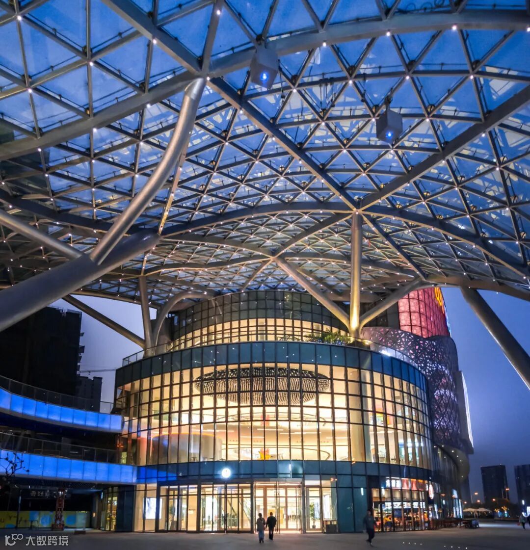 入口处雨棚为市民公共活动提供了遮风避雨的檐下场所,城市公共性和商业价值在本项目中得到了平衡。整个入口呈波浪形的曲线造型,是本案最大的亮点之一,这也将成为全江苏首例跨度如此之大的钢构雨棚。通过钢结构支撑,结合特制玻璃,与建筑形体相呼应,凸显优美的曲线造型,以力量和曲线的碰撞,展示常州实力之强盛。