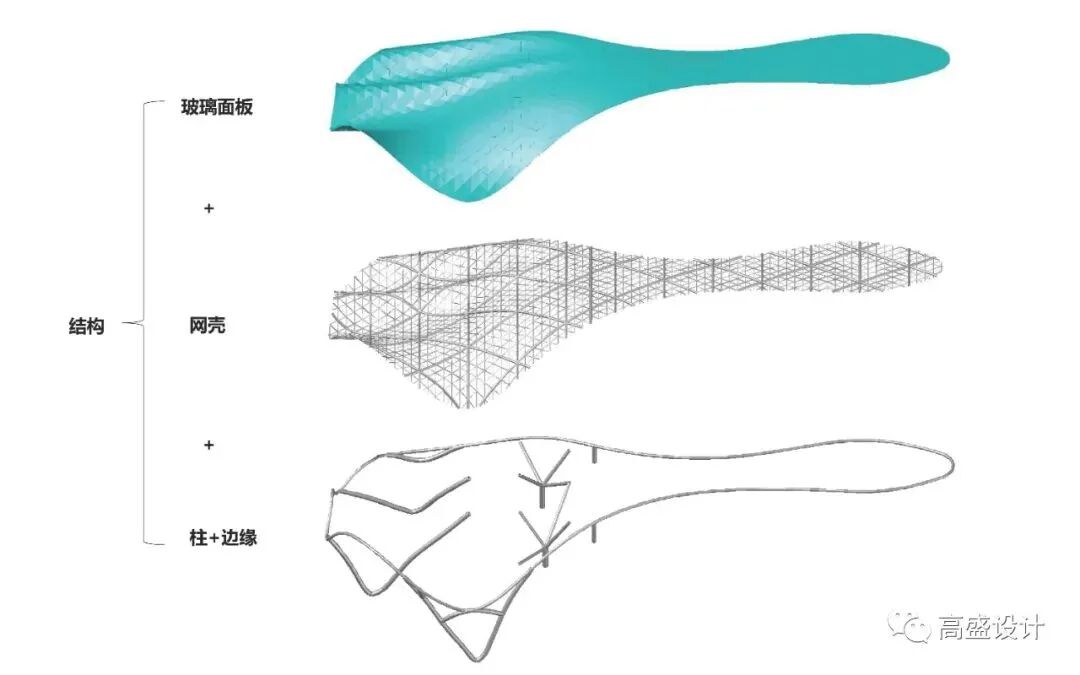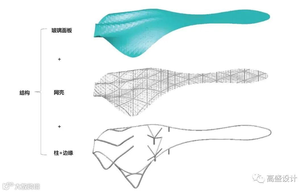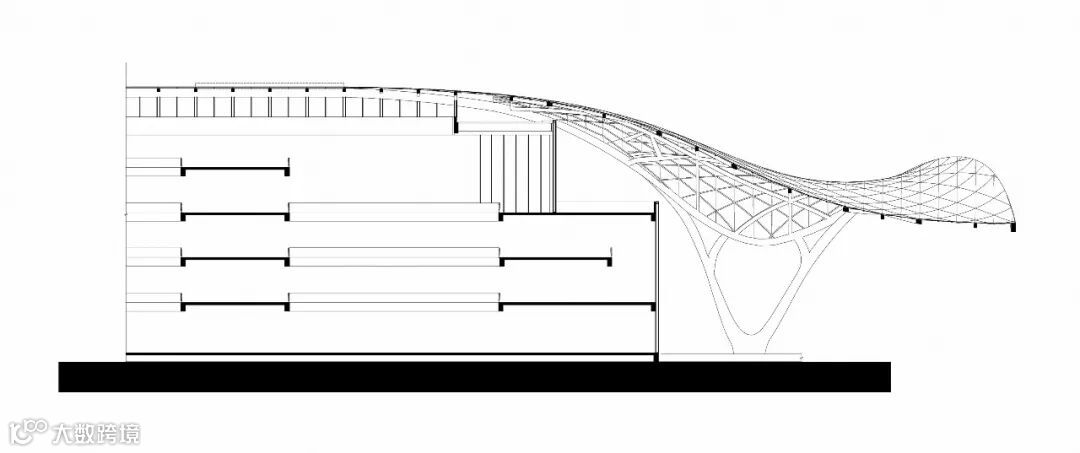 西侧入口处,通过模拟鱼尾的造型,使用细腻的曲线,沉稳的造型,刚柔并济。