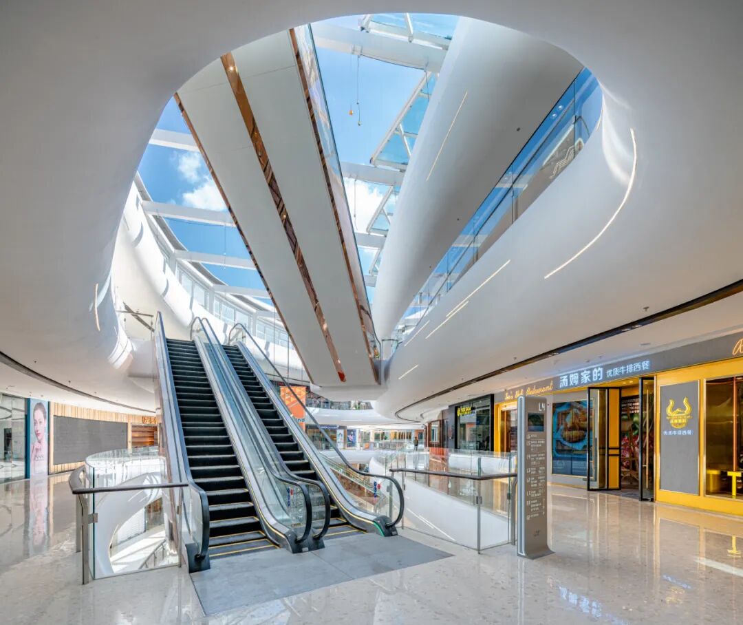 常州天宁吾悦广场室内采用现代主义设计手法,运用亮色材料配合现代化配套设施,打造充满现代未来气息的室内环境,尽可能的多挖掘主题背后的文化资源,打造文化体验。