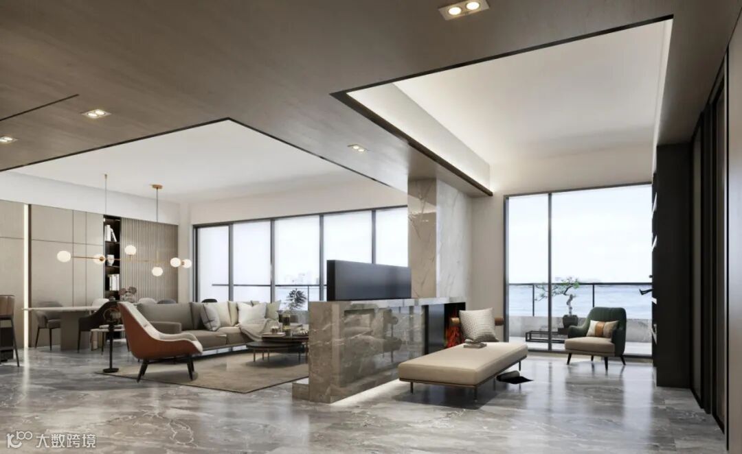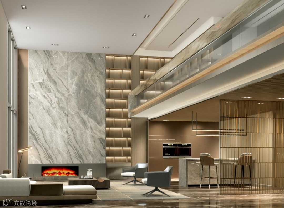 随着豪宅的社交性增强,可以很明显的看出,公区已经告别了以沙发电视为核心的传统布局,而是集合了看电视、阅读、聚会、休闲娱乐等多功能,营造更加自在的活动场景。