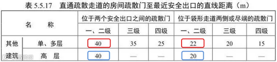 依据《建筑设计防火规范》5.5.17条,公共建筑的安全疏散距离,也有相应改变。