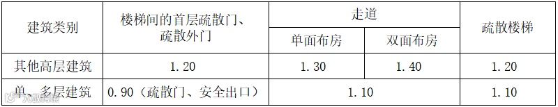 依《建筑设计防火规范》5.5.18条,疏散宽度也有变化,总结对比数据如下: