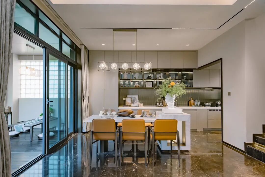 客餐厅连贯又互相独立,互不干扰,相互串联而富层次感,视觉通透而私密。舒适居所。