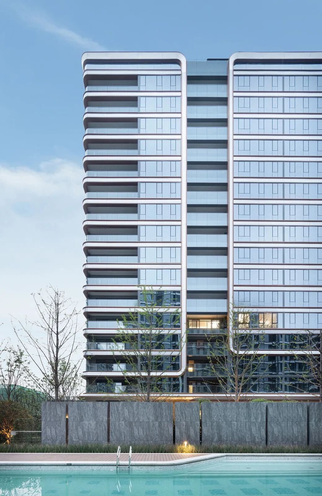 项目首期地块以大平层产品为主:建筑立面以重庆城市地理特色为原型,以山水流线作为设计母题。