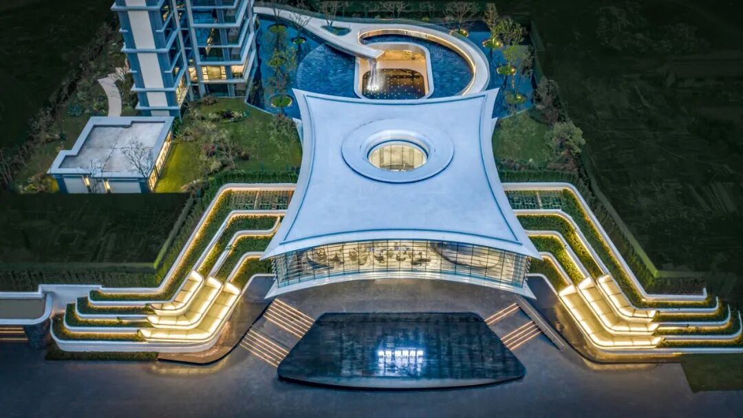 公园会客厅由MOD墨设创始人冯未墨与万华装饰中心副总经理宋真率设计团队共同完成,是一座融合销售展示中心、艺术空间、访客中心、健身房、游泳池、麓客学社等众多功能的复合型空间。银色流线型建筑,颇具先锋意味和现代时尚感。以山城立体之美为主要概念,多维演绎重庆大开大合的地域气质。