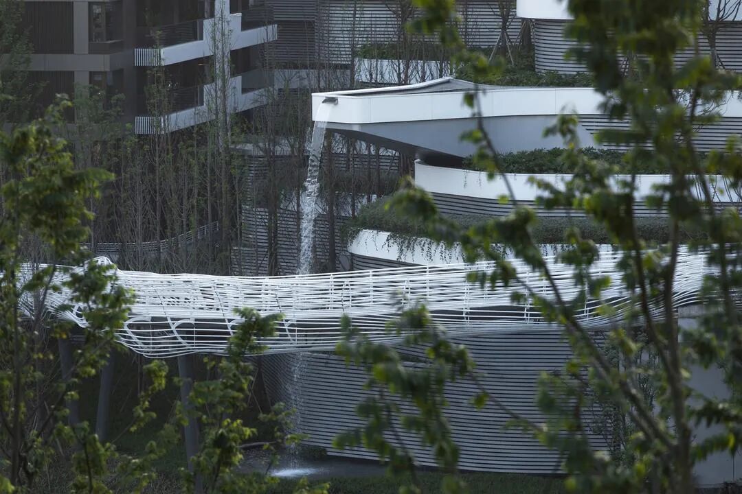 云瑶玉陛落址于城市中央公园附近,为了打造独特性的城市建筑符号,“云瑶玉陛”借一座山隔断了城市的喧嚣,用一座桥引领人们遇见一处世外桃源。