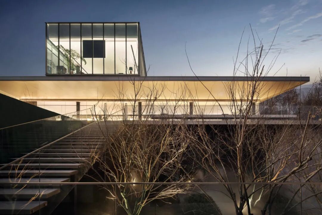 重庆绿城·晓风印月项目最大高差超过50米,售楼部示范区高差超过20米。与大地共生,架在自然之上的建筑,消失在大地中的玻璃盒子,舒适的台地空间,极致的开阔视野,人在其间有丰富的空间体验。是晓风的设计愿景。