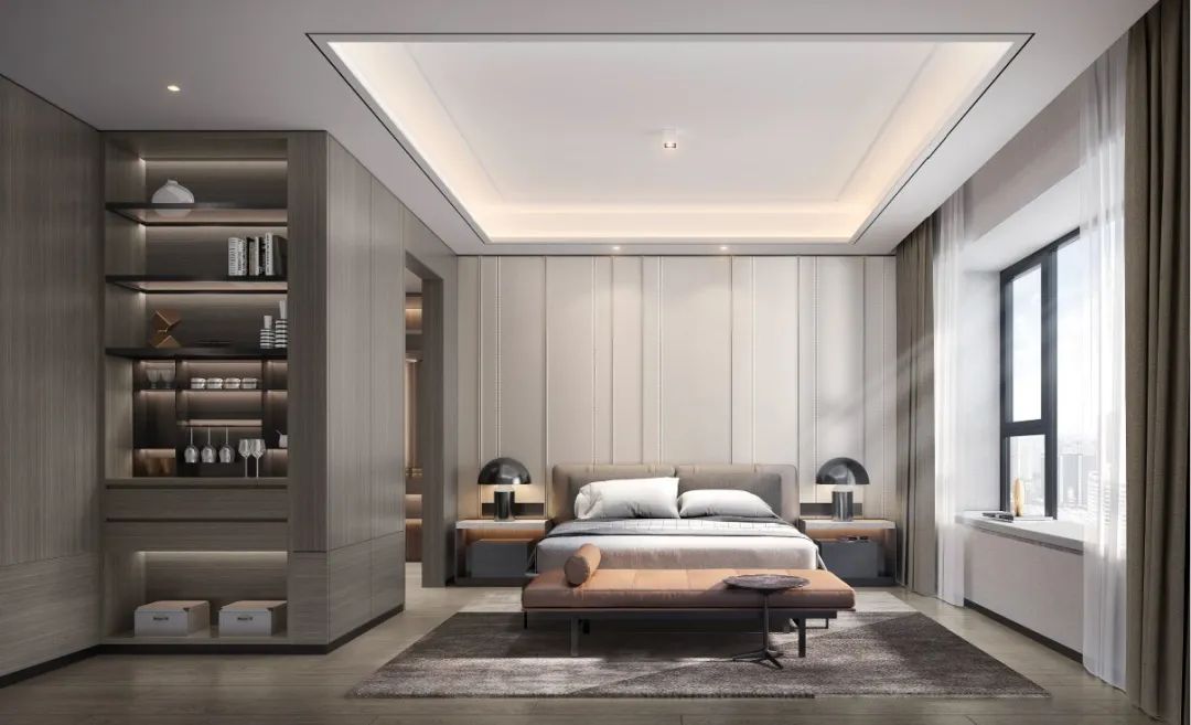 主卧很明显的设计趋势就是全功能化,夫妻两人关上门可以喝茶谈心,重温二人世界。