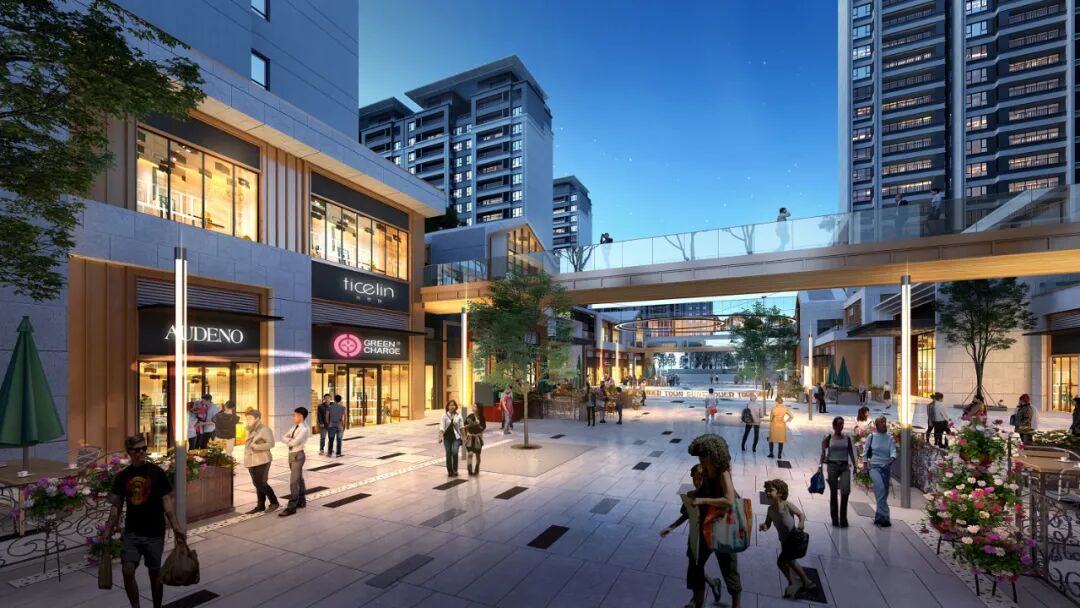 社区外规划1.5万方人车分流的独立设计商业街区,看清楚,这不是简单草率的裙楼底商,而是真正的一条街区,如此一来,这里就会呈现有着烟火气与精致感的高频次生活场景。