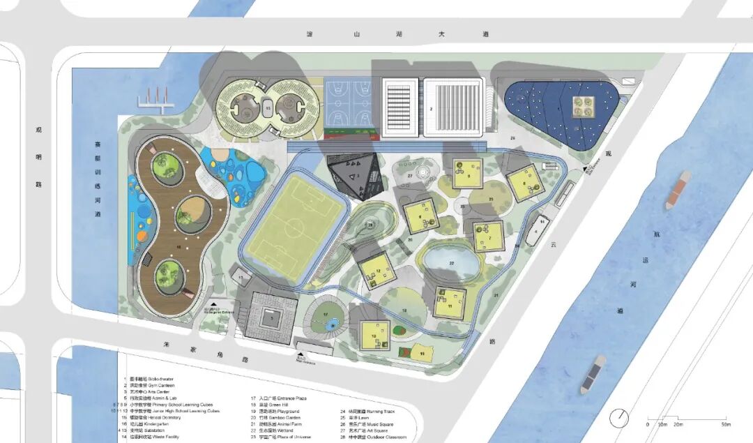 OPEN建筑事务所在上海的 "新学校 "校园由13座独特的建筑组成。这是一个由24班幼儿园、30班小学、24班初中组成的大型国际化民办双语学校,计划容纳2000名3-15岁的学生。