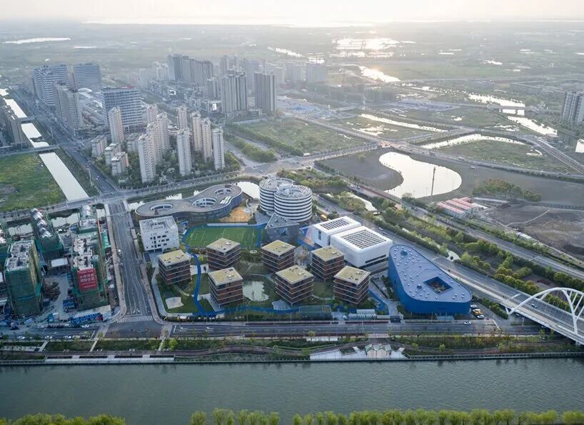 the OPEN architecture-designed new school in shanghai is no longer a simple campus, but a living organism that sustains the growth of life. the organic distribution of teaching facilities makes it possible that learning can happen anywhere on the campus. with their intimate scale and distinctive characteristics, the buildings are easy for children to connect with. with facilities for the school’s kindergarten, primary school, and junior high school organized in relatively independent clusters — each adapted to students’ respective ages — children can feel their physical environment ‘mature’ alongside them as they progress through the different stages of their education.