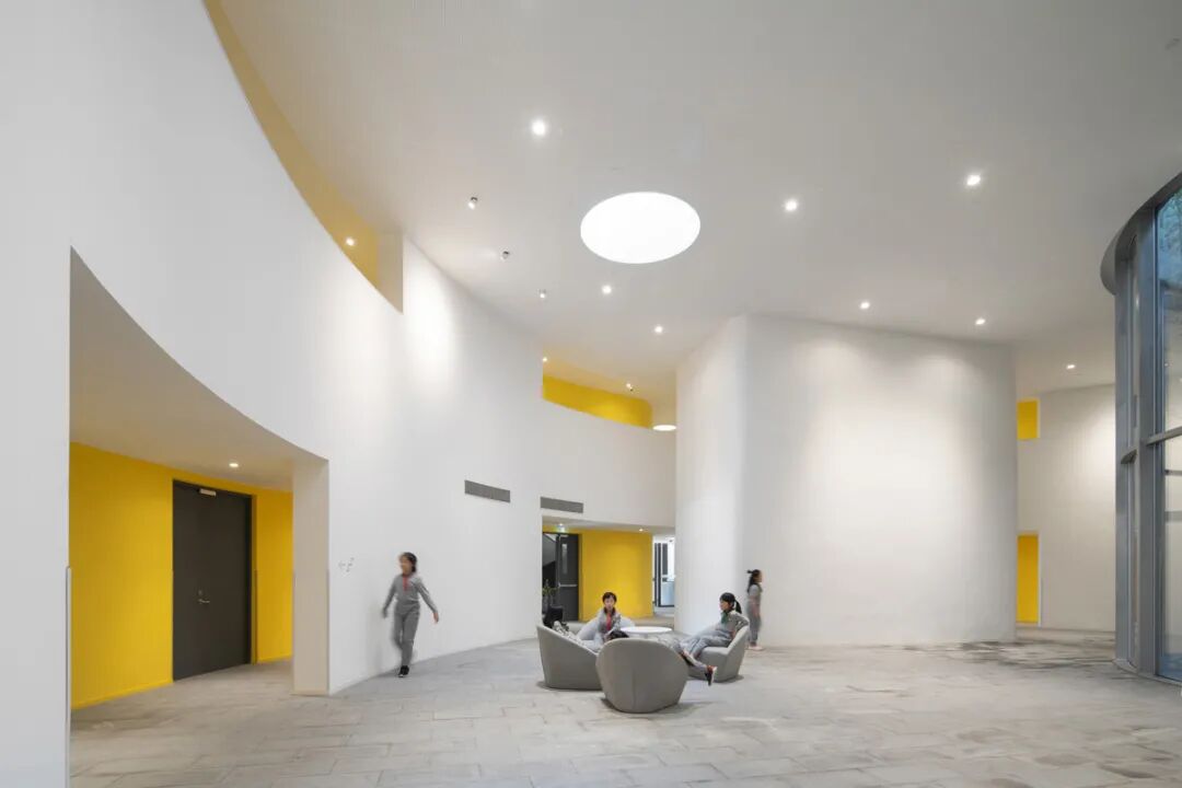 在13座单体建筑中,既有立方体的教学楼、行政实验楼,也有螺旋宿舍和自由形态的幼儿园。阅读,体育和艺术作为当代教育的重要组成部分,它们所对应的图书剧场、运动食堂和艺术中心也成为这座校园的三座核心建筑。
