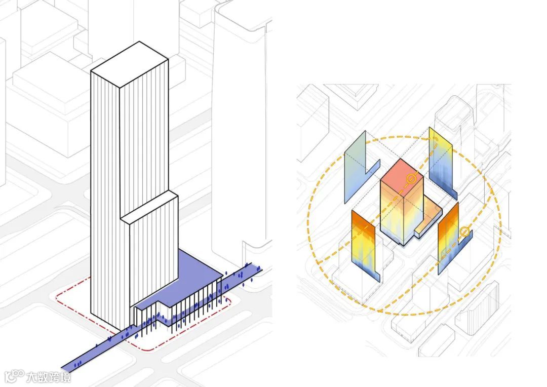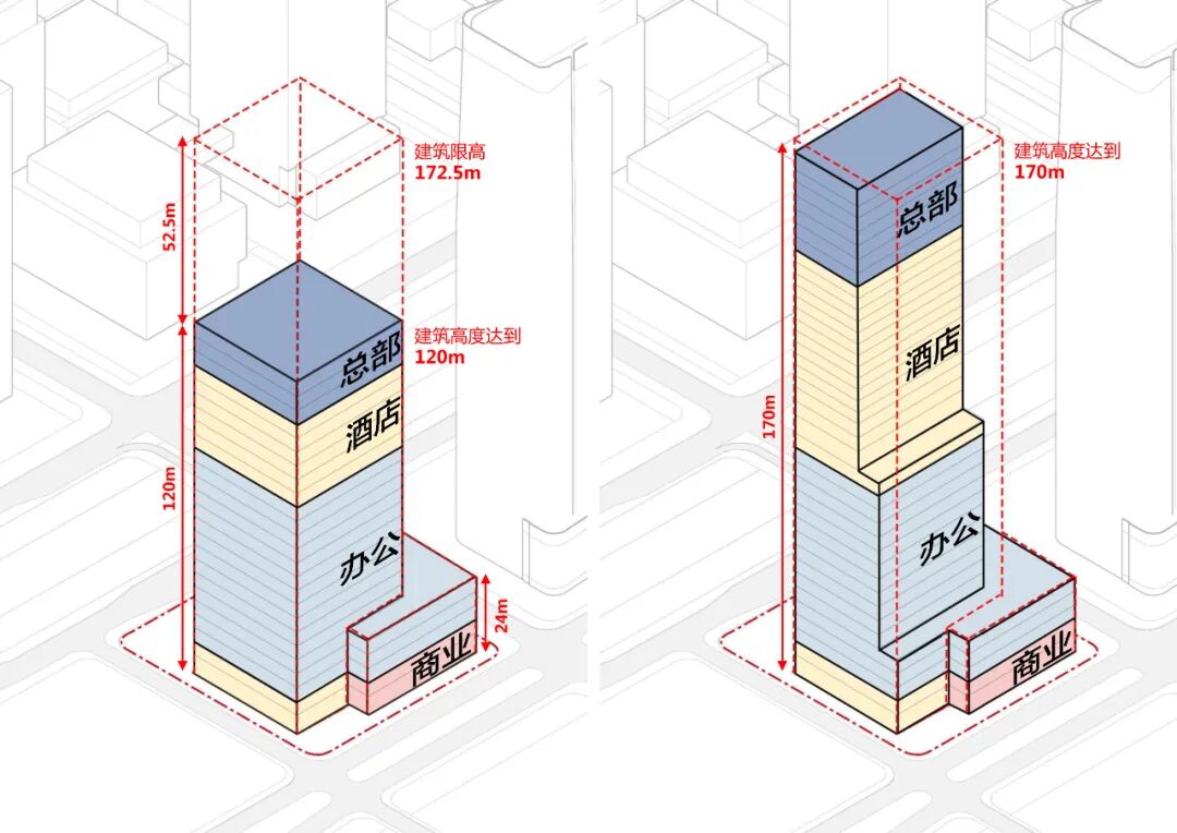 此外,由于严格的城市设计与用地限制,塔楼、裙楼的基本位置与形体关系已经几近确定。