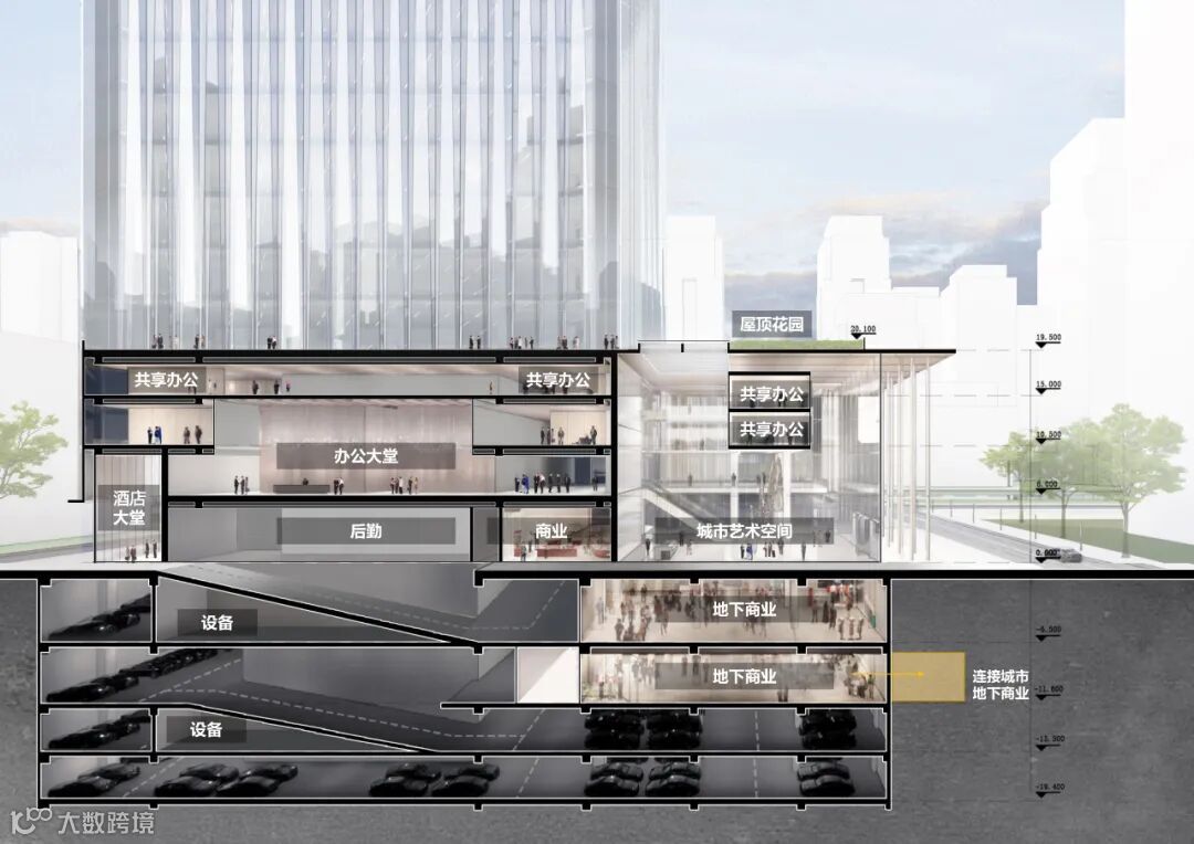▲塔冠总部剖透视