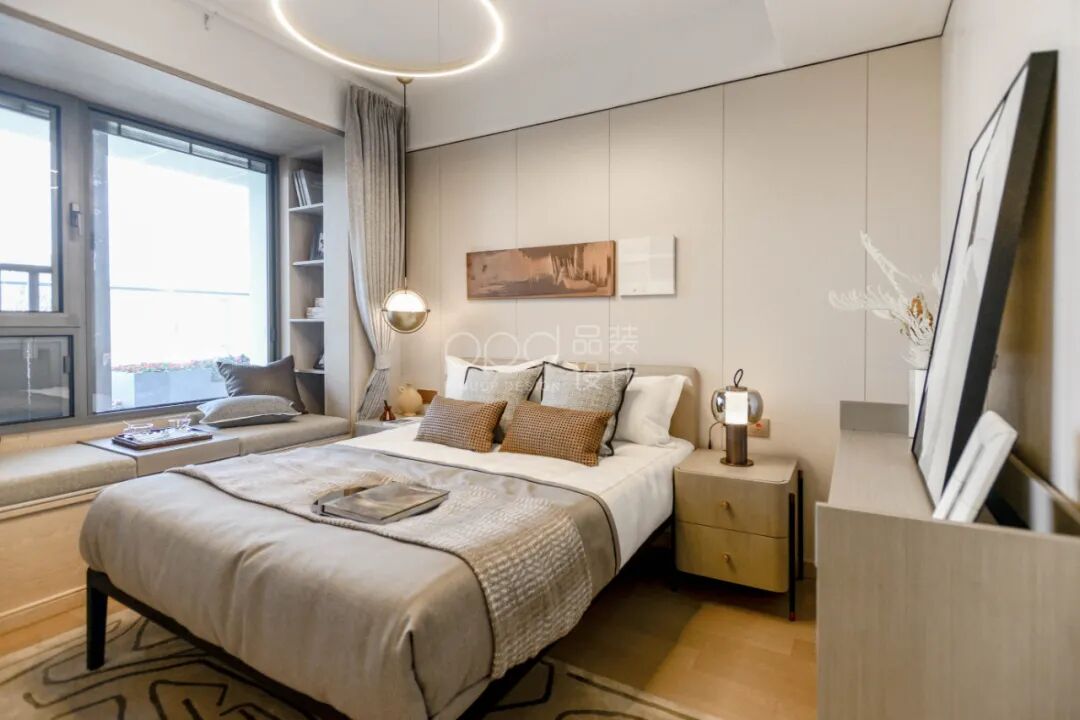 次卧:两间次卧可以作为儿童房或老人房,也可以根据个人需求作为客房、衣帽间等等。风格上延续客厅、主卧简约轻奢的风格,且均配有超大的休闲飘窗,不仅美观实用,也让生活变得更加惬意。