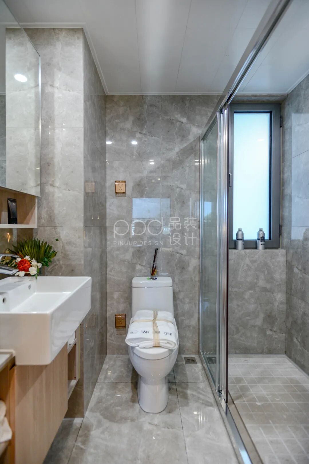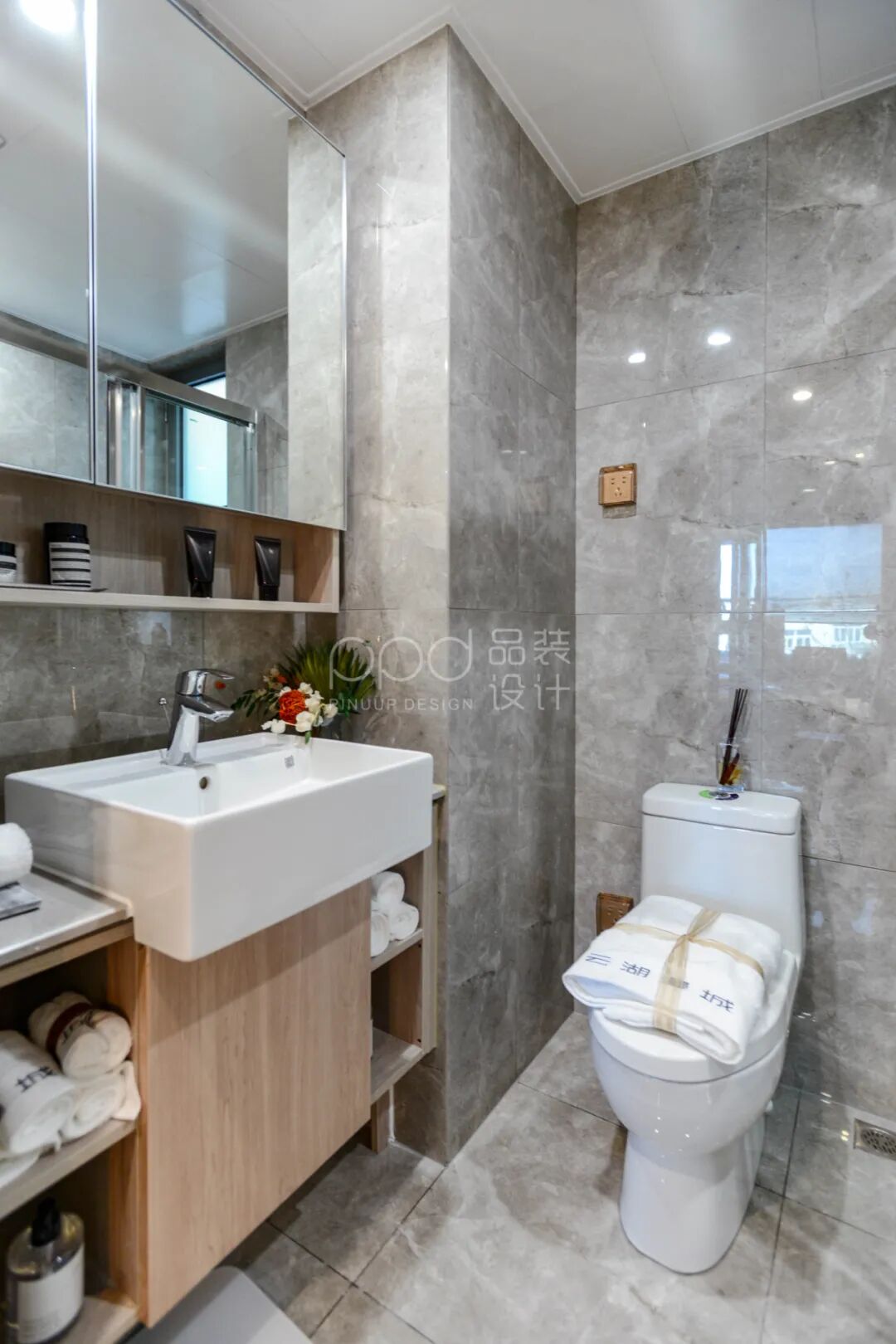 本案有公用卫浴间、主卧卫浴间两个卫生间,均采用的是干湿分离的设计,全大理石的墙地面更易于清洁,能够保证空间的整洁卫生。充足的收纳、宽敞的空间、分隔的功能让多人使用都轻松、便利。