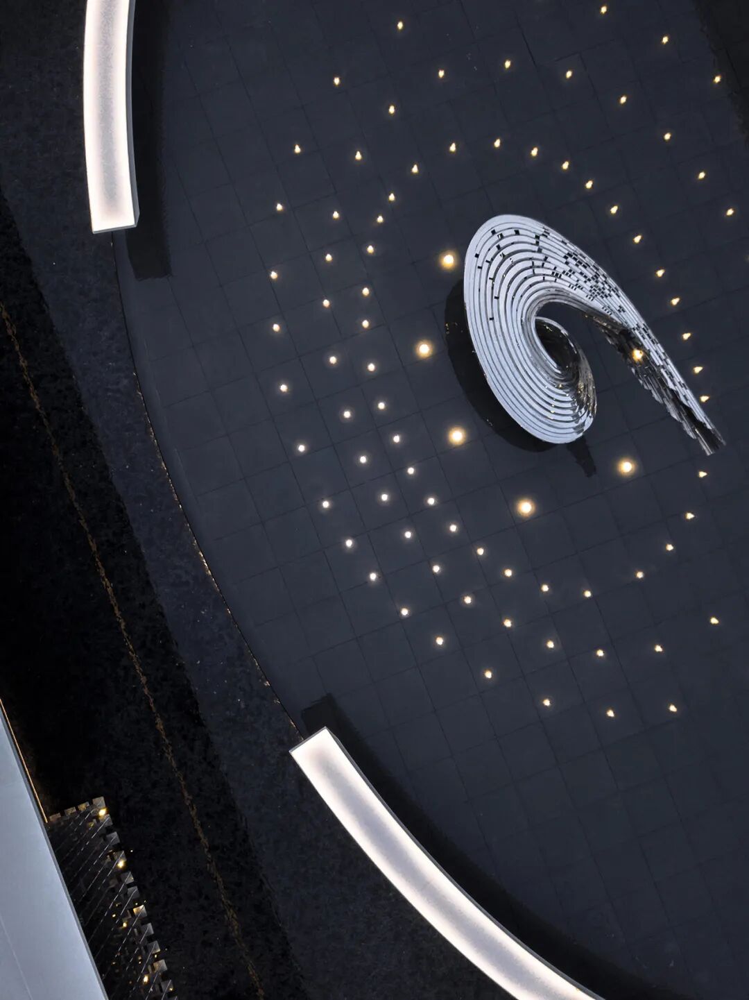 沙盘之上,中庭之间,200多只展翅飞翔的“白鹭”青云直上,相鸣而归,表达了“归巢”的美好寓意。