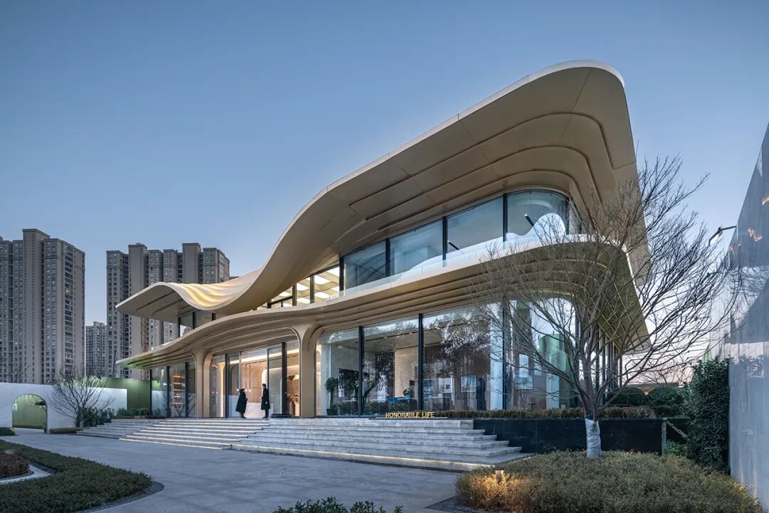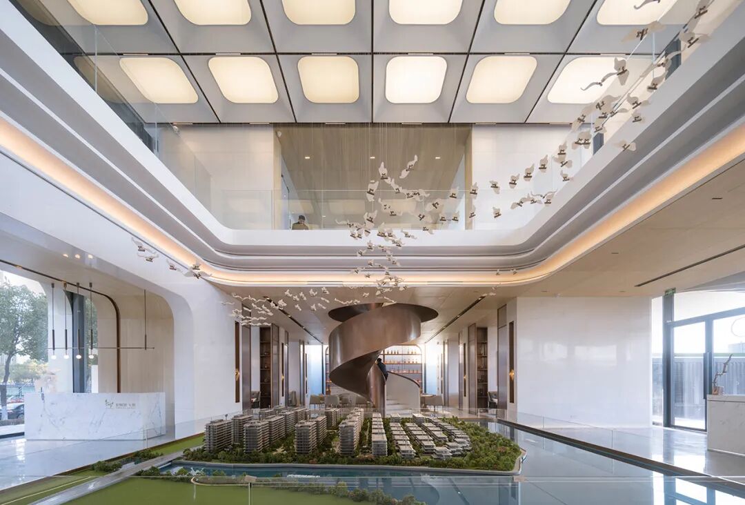 近日,由零壹城市建筑、室内、软装一体化设计的绍兴金昌·烟波飞鹭“头鹭奋飞”生活美学馆,历经约100天急速建造,已正式落成开放。