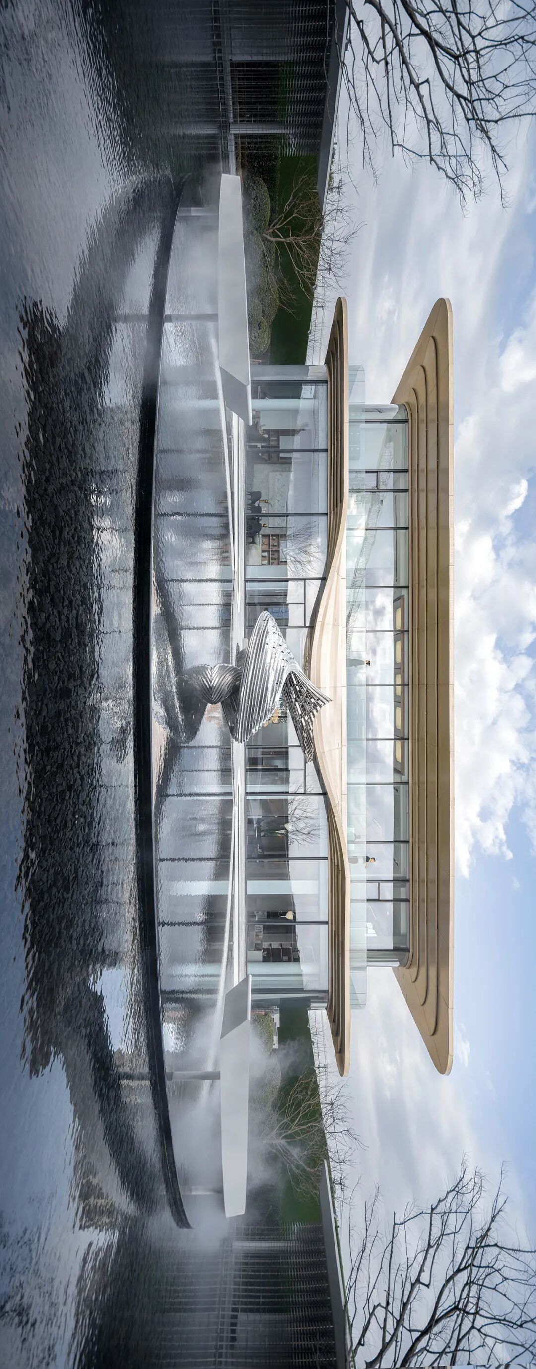 在美学馆现代的外表下,是古典的对称构图。流线造型消除了对称的机械僵硬,零壹城市用轻盈的方式重新诠释了古典美学。与此同时,得益于对称设计,非标准构件数量大幅缩减,施工难度降低,建造速度提升。