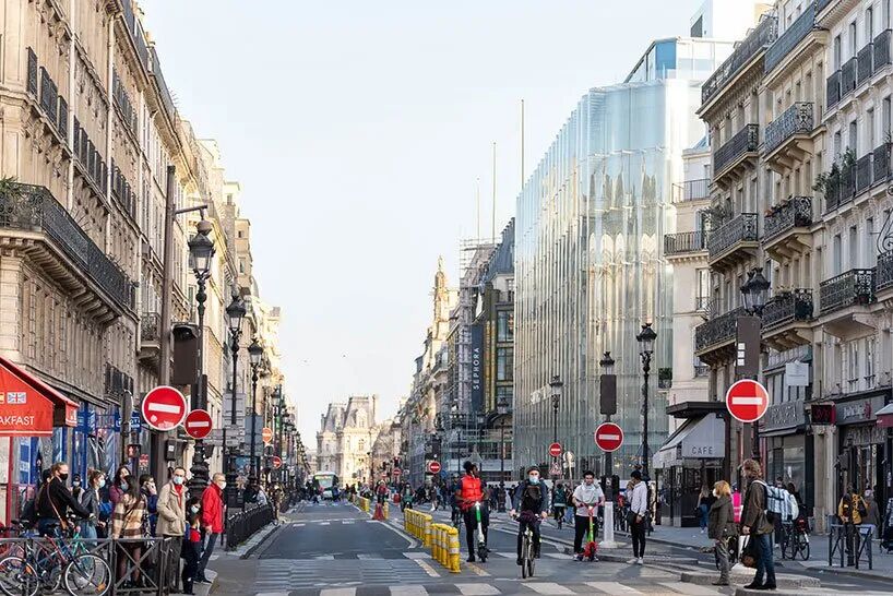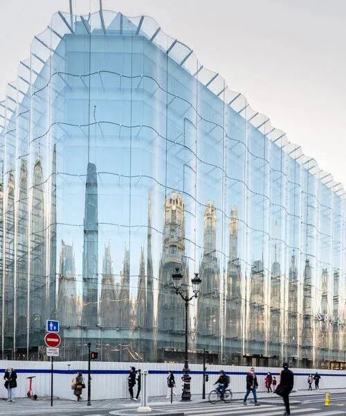Kazuyo Sejima和Ryue Nishizawa将他们的介入描述为与建筑的纪念性规模和Rivoli街的强烈边界的协商。双层外墙反映了周围建筑的装饰,并带来了一种运动,邀请公众探索这个城市街区。