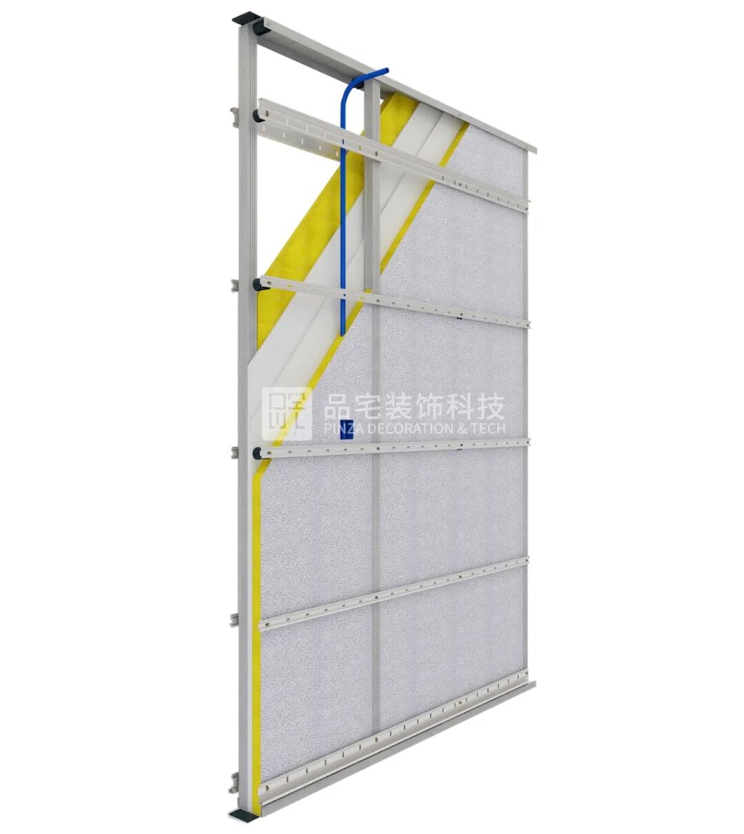 CARR®卡瑞断桥静音隔墙系统,属于轻质隔墙中的骨架隔墙,通过竖向及横向的构造设计,满足刚度的稳定性。