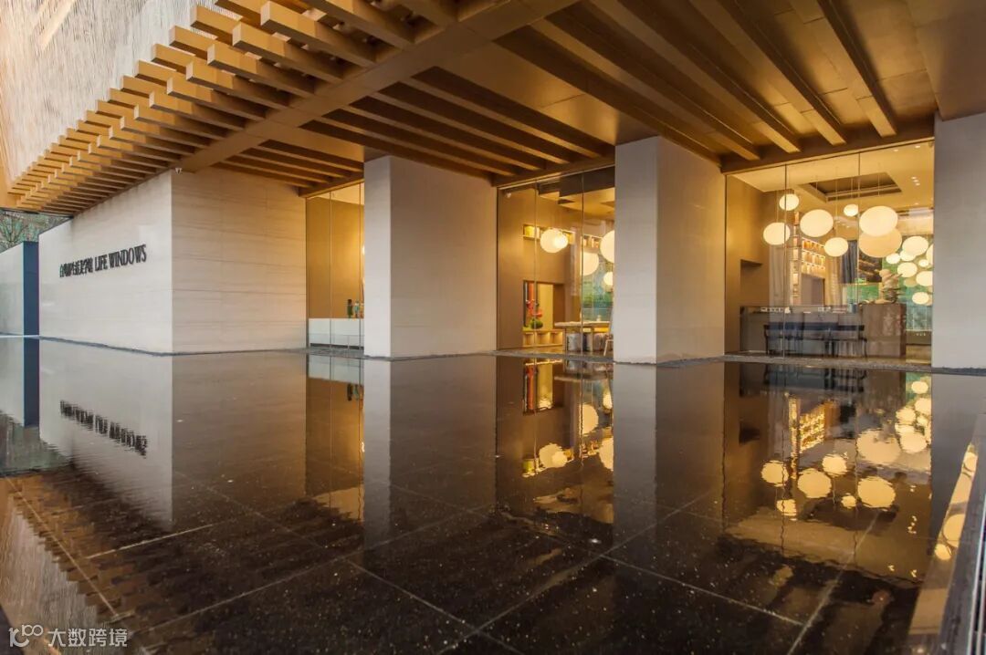 走进大门呈现眼前的是社区景观中轴-漱玉池,石材路面直通内庭,两侧运用绿植、中式元素灯具打造对称中轴,打造进入内庭的仪式感。