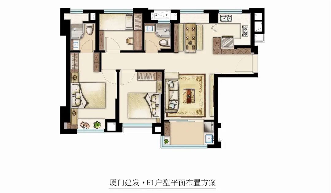 建发养云顶层复式为6房4卧3厅5卫2阳台1露台,它打破了大平层的平面布局,将居住空间层次化,功能布局更为合理,居住体验更为尊贵。它既有大平层的天际视野,又有别墅的居住形式和空间尺度,完美诠释了繁华都市极致的空中墅生活。