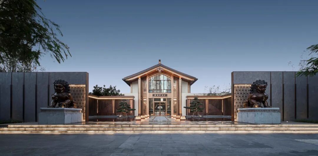 整个建筑外观也是采用目前非常高端大气的中式盛唐国风来打造,以轻盈的铝板作为挑檐,立面格局稳重大气,又显得灵动飘逸,配以格栅,步步锦、回字纹、万字纹,不仅代表着美好的寓意而且还能使建筑整体传达出唐朝文化的底蕴。