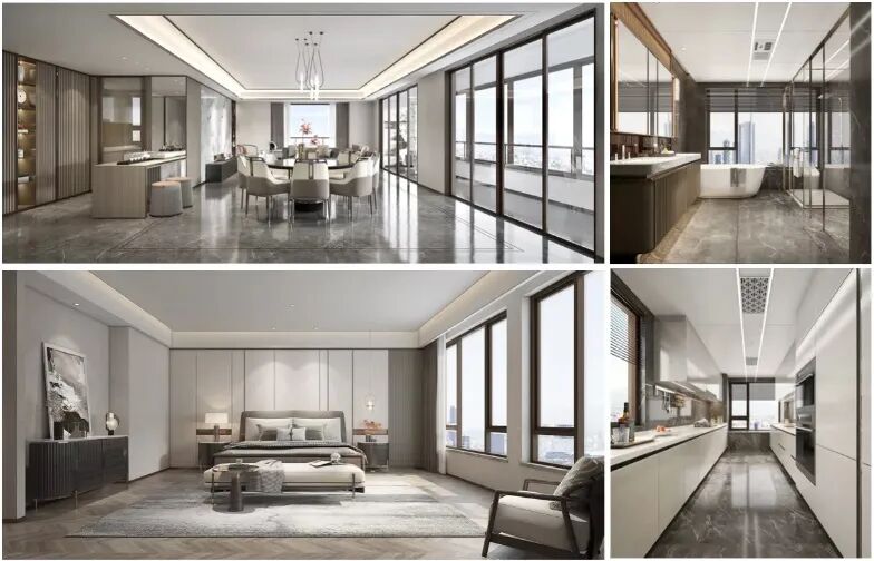 奢华户型布局,建面约193㎡-275㎡四房两厅两卫。275㎡户型私家电梯入户,彰显尊崇气度;客餐厨一体营造,全景奢华宽厅,城市风光尽收眼底;中岛台延伸空间,多元创享;双朝南主卧,双衣帽间、双台盆配备,宽享生活;保姆房独立,业主佣人双流线,生活更加自在。