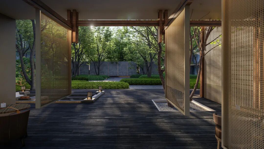 新中式禅境栖居,纳藏东方园境,园林设计采用“一轴 二院 六园”格局设计,汲取中国卷轴 画灵感,创造以画代景、景中有画的艺术生活氛围。