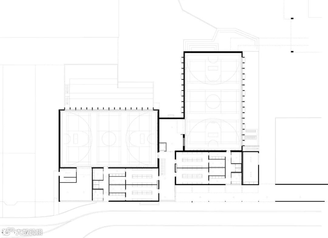 这座体育馆和游泳馆由州建筑师汉斯-卢德(Hans Luder)设计,于1967年完工,是巴塞尔Wettstein区Vogelsang学校建筑群的一部分。这座引人注目的建筑由两个垂直的大厅及其附属区域和一个以前的看守所组成,看守所通过一个细长的顶棚与大厅相连。