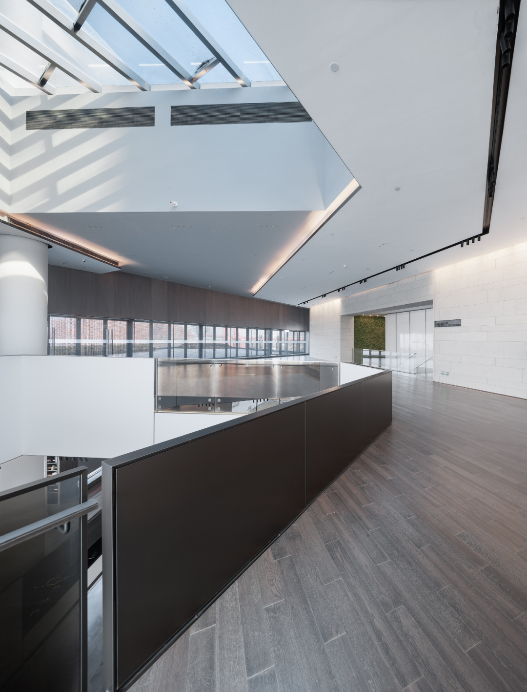 连续开放的中庭设计不只是为了空间表达的顺畅,同时也是为了避免内部人流动线的交叉。内部对空间不做过多预设的排布方式,为未来兼作文化展示或商业餐饮等复合功能提供可能性。