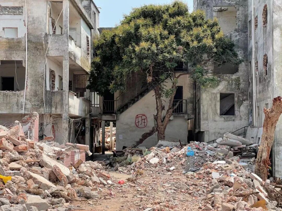 在狭长的巷道里,仍然可见废墟中的点滴历史痕迹,上个世纪遗留下来的门匾、家门口的盆栽,村子尽头一棵拥有500多年历史的古榕树,树下供奉着土地神…… 一切细节凝固了直至村子被拆的前一刻人们在这里生活的印记,承载的浓厚情感和回忆可见一斑。