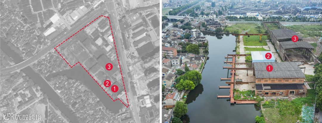 我们来看基地,场地现状三处工业厂房遗留,并不是所有的建筑都得到了保留。