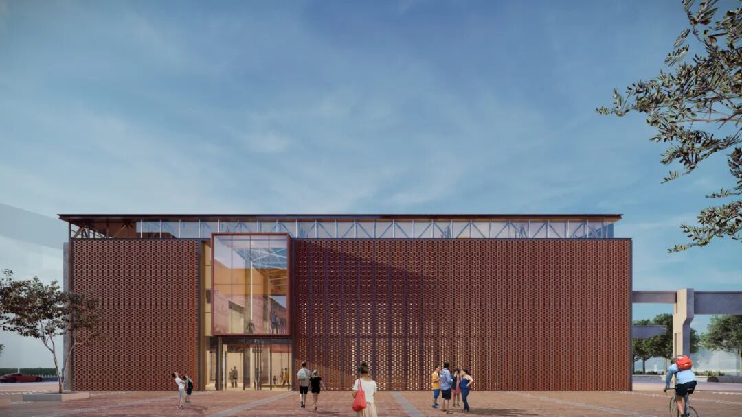 各个立面采用几何化构成手法,通过镂空陶砖与密拼陶板错落布置,凸显编织感肌理纹路,强调简洁大方的造型设计手法,提升城市形象。