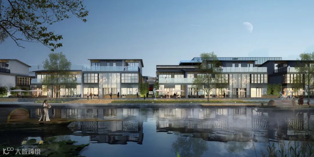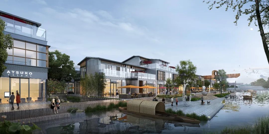 滨水低密度的小尺度商业水岸新里,在规划中加入运河的概念,从外部运河将水引入,与内部运河连接,营造江南水乡的效果。