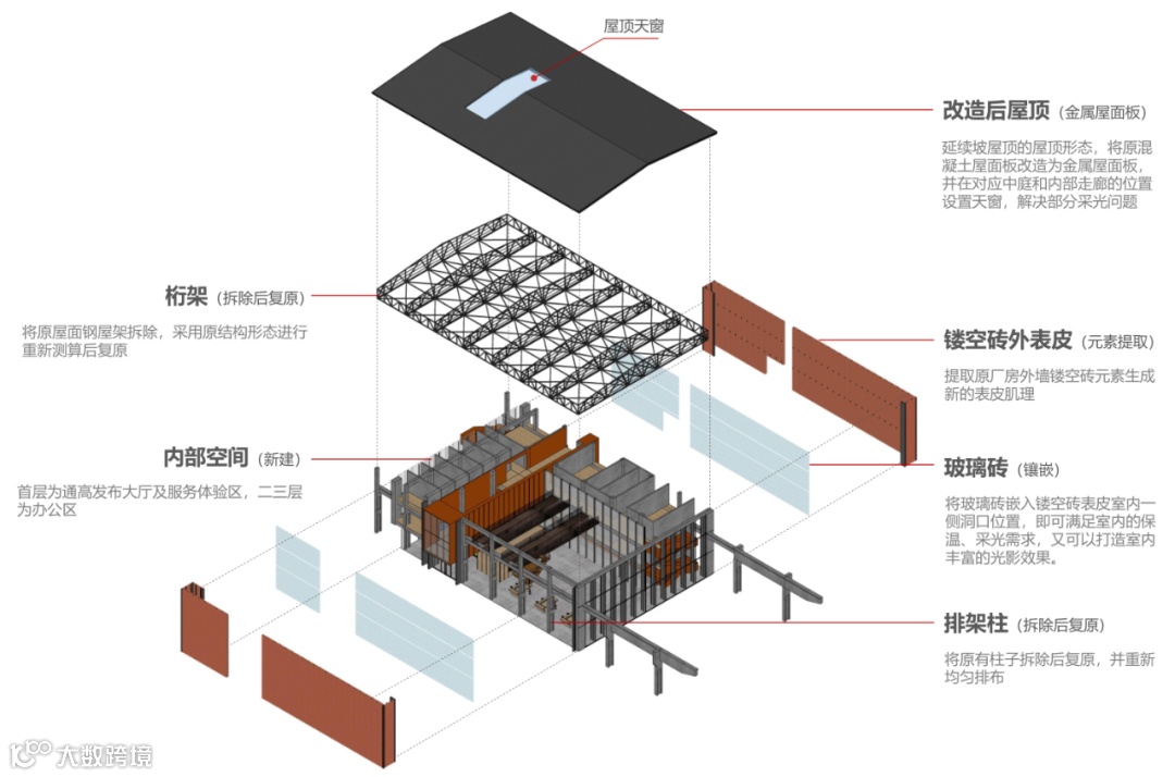 3号厂房的改造设计进行了尺度转换、功能转换和氛围转换“三重转换”。
