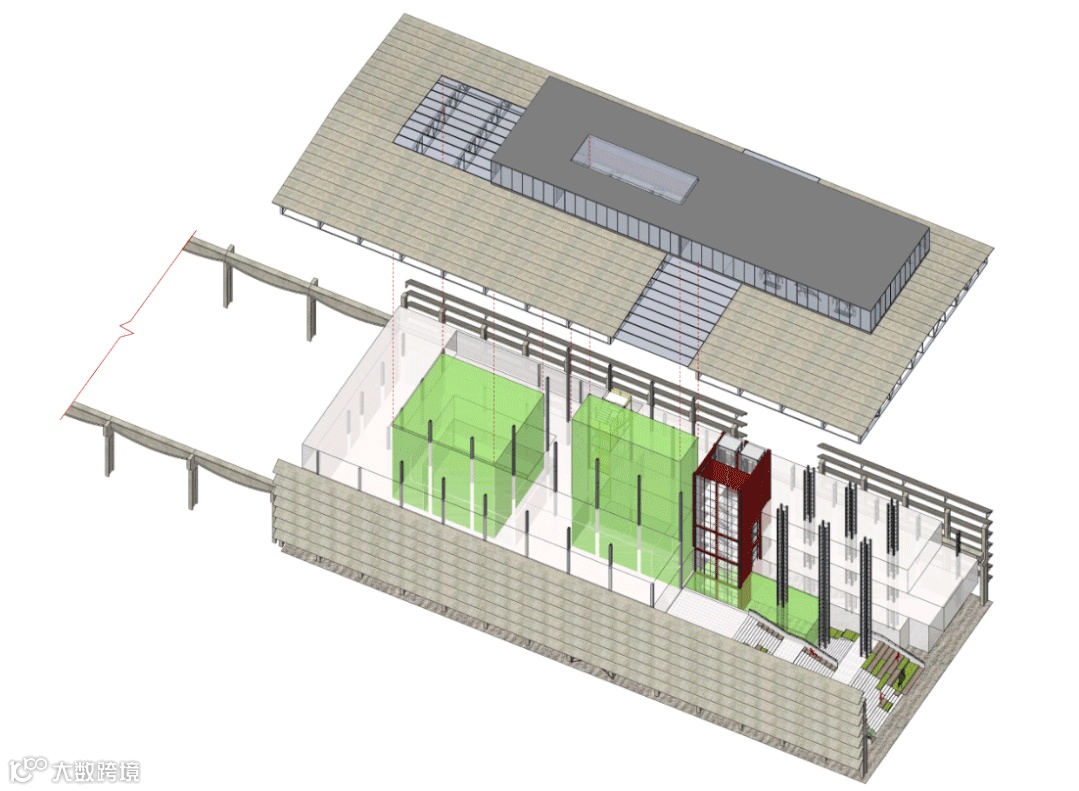 设计通过大、中、小空间尺度上的过渡和转换,使内外形成对比与呼应,同时消弱各个分区间的冲突,实现建筑与景观的相互渗透及室内外空间的融合。
