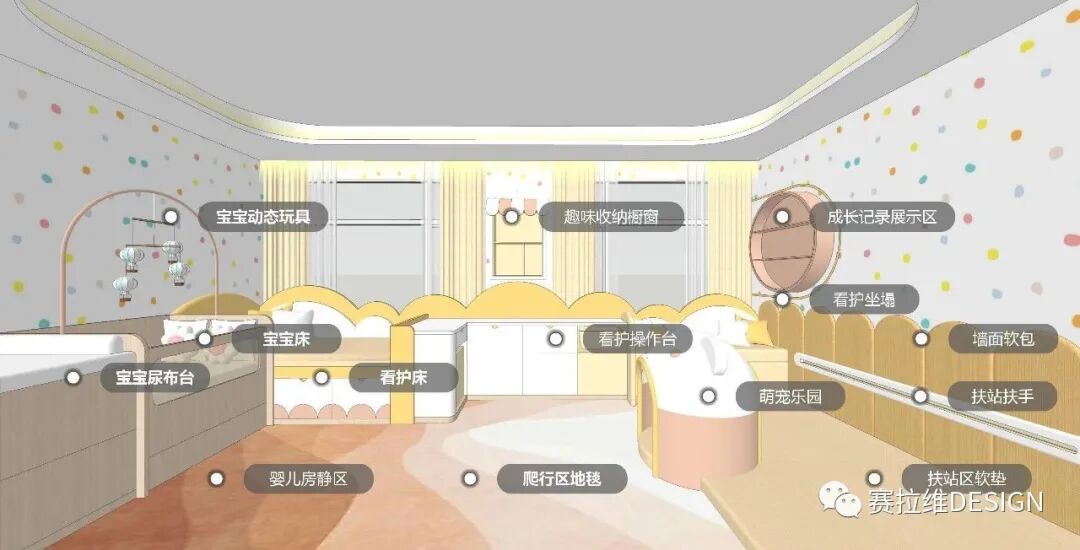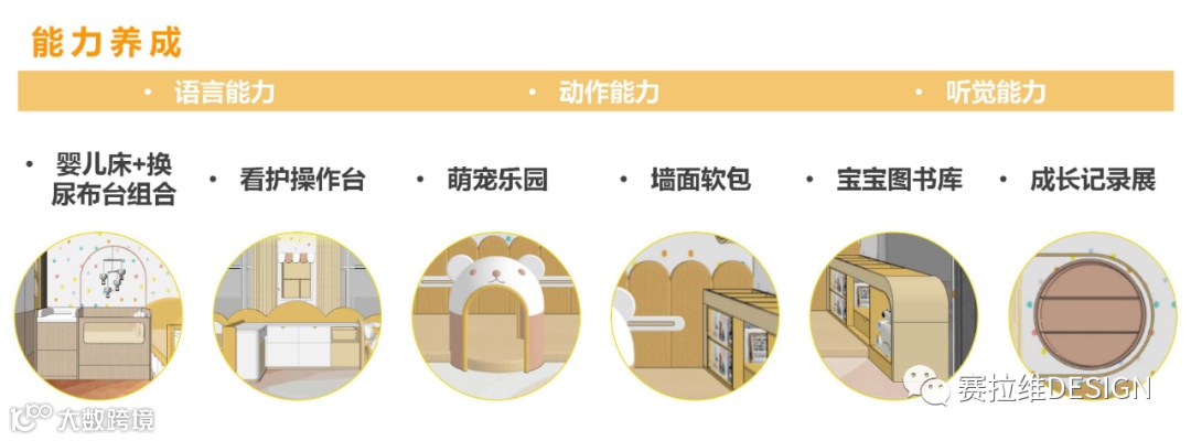 “生命最重要的前三年”婴儿很难完整的表达自己,这个时期需要我们给宝宝更多的爱和理解。宝宝们的哭泣,有时候表示“请帮我,让我自己做”,静区一张低的床就可以帮助他靠自己,做一些重要的事情;6-11个月,爬行区让宝宝自由活动;12-15个月,扶站区可以让宝宝迈出人生的第一步。不论在任何婴儿期都能给宝宝专属自由的空间辅助宝宝的成长发育。