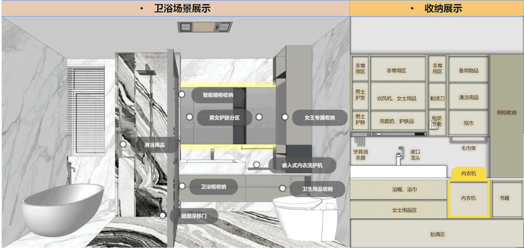 智能卫生间系统,漱口洗面龙头早晨轻松洗漱。嵌入式内衣机,沐浴后内衣直接清洗,解放双手,洁净卫生。牙具消杀器,可将残留牙具细菌消失殆尽。品质生活,从点滴细节开始关注。